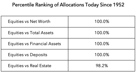 Below we show the latest Z1 Flow of Funds release which dates to Q2 2025. This shows the current reading ranked in percentiles since 1952. A reading of 100% means this is the highest reading since 1952.