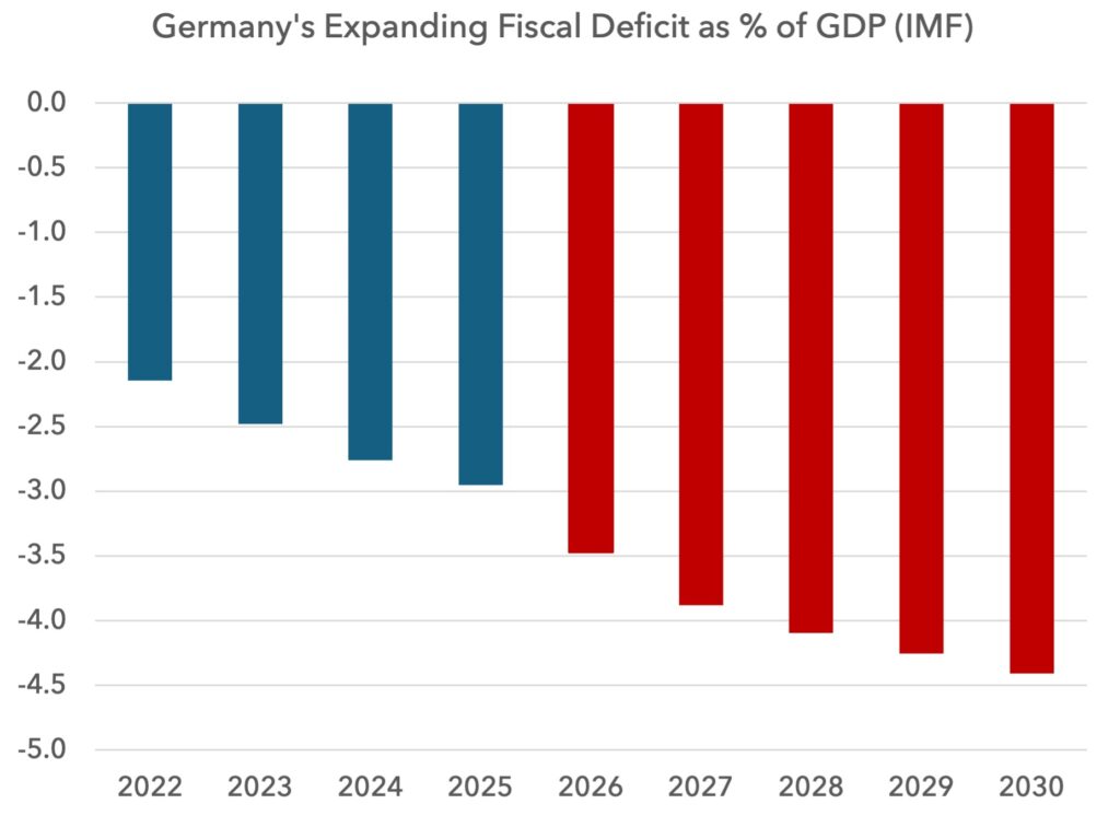 In Europe the change is more implicit. German fiscal expansion is significant as we show in the chart below.